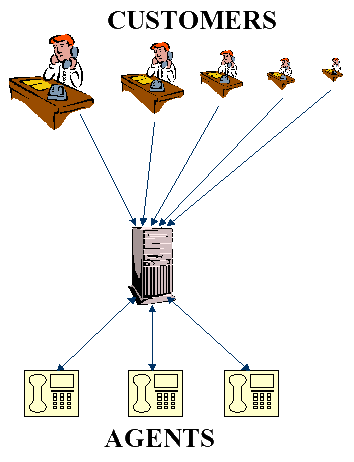 Usage Example: VOIP Call-CenterGnuGk, together with an ACD application (Automatic Call Distribution), can be used to set up a VOIP call-center.Incoming calls to a single number are distributed to many agents (eg. hotline). The current ACD implementation already has these call distribution policies: