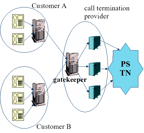 Usage Example: Call TerminationIf you are in the business of selling VOIP minutes, GnuGk can handle call authorization and accounting for you.In addition to that GnuGk can make very flexible routing decisions for your VoIP traffic: